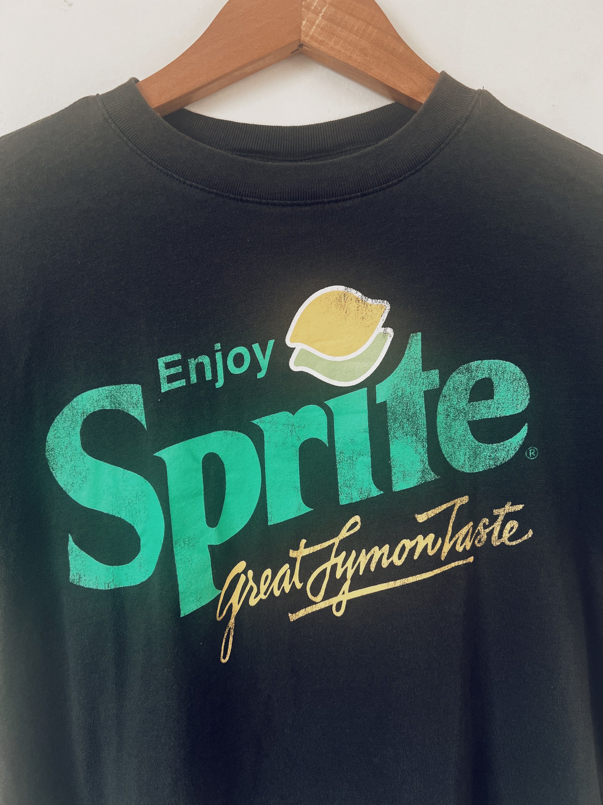 Even if you do not love Sprite, this is still a cool tshirt for you. Natural fade on the print. Oversized, flowy fit. Easy to wear.