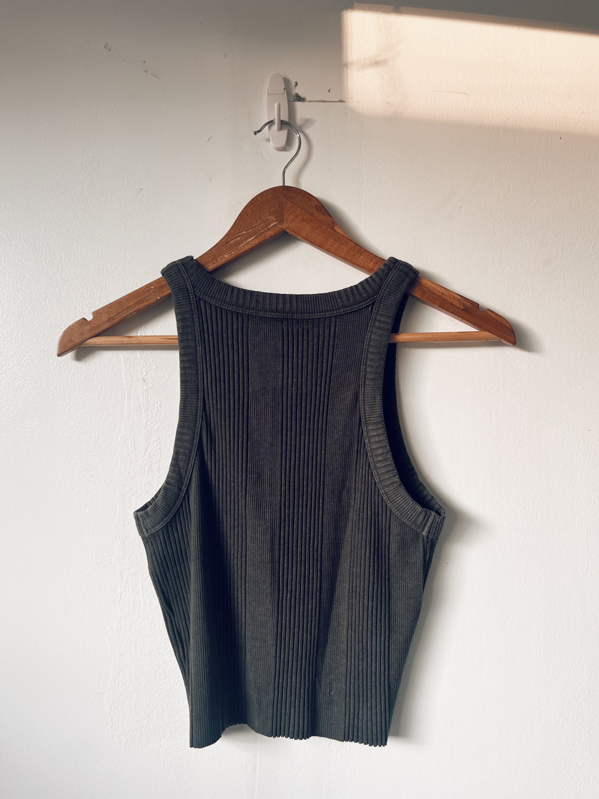 Super kewl tank top. Soft. Ribbed. Racerback. Crop top. Stretchy. Great quality. Easy to wear.