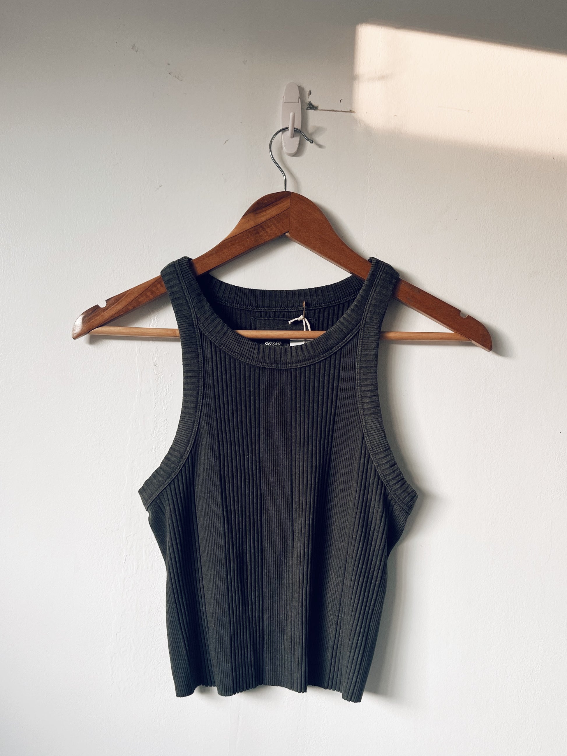 Faded Black Ribbed Racerback Cropped Tank Top