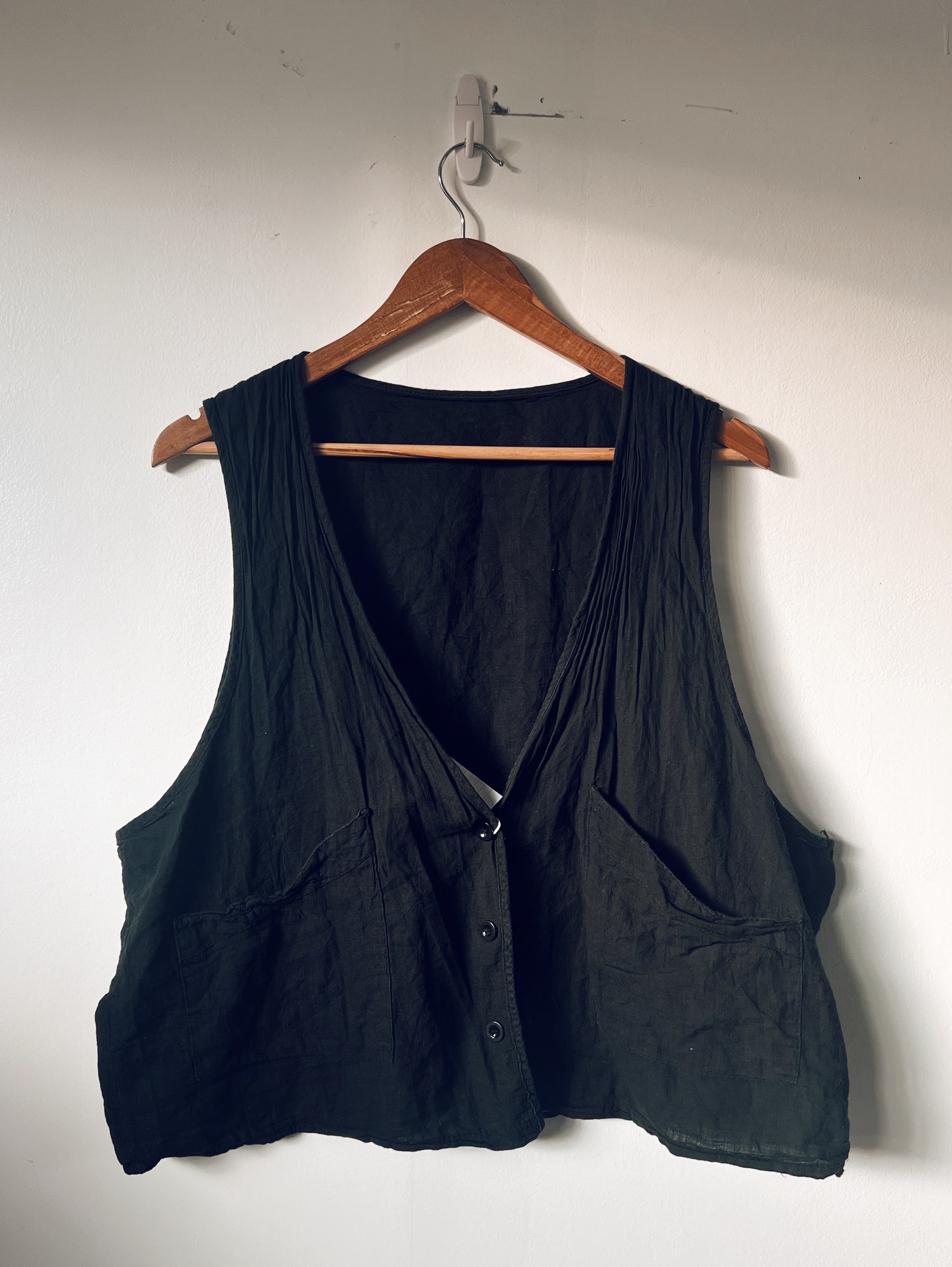 Versatile black vest. Minimal. Two pockets. Black buttons. Can be worn on top of anything and can also be worn by any size.