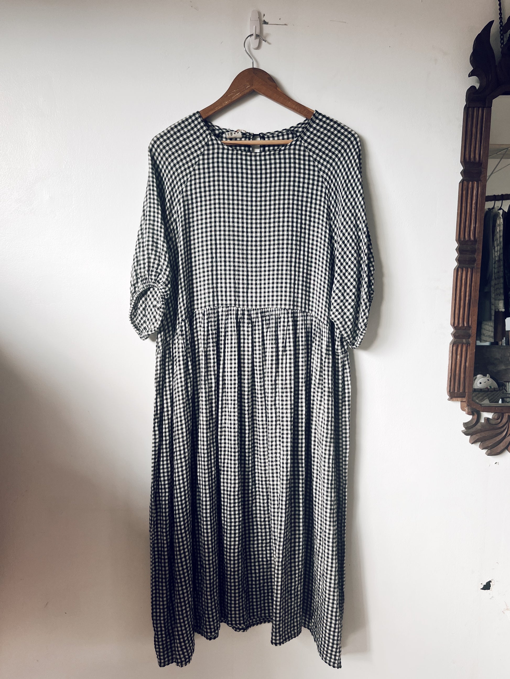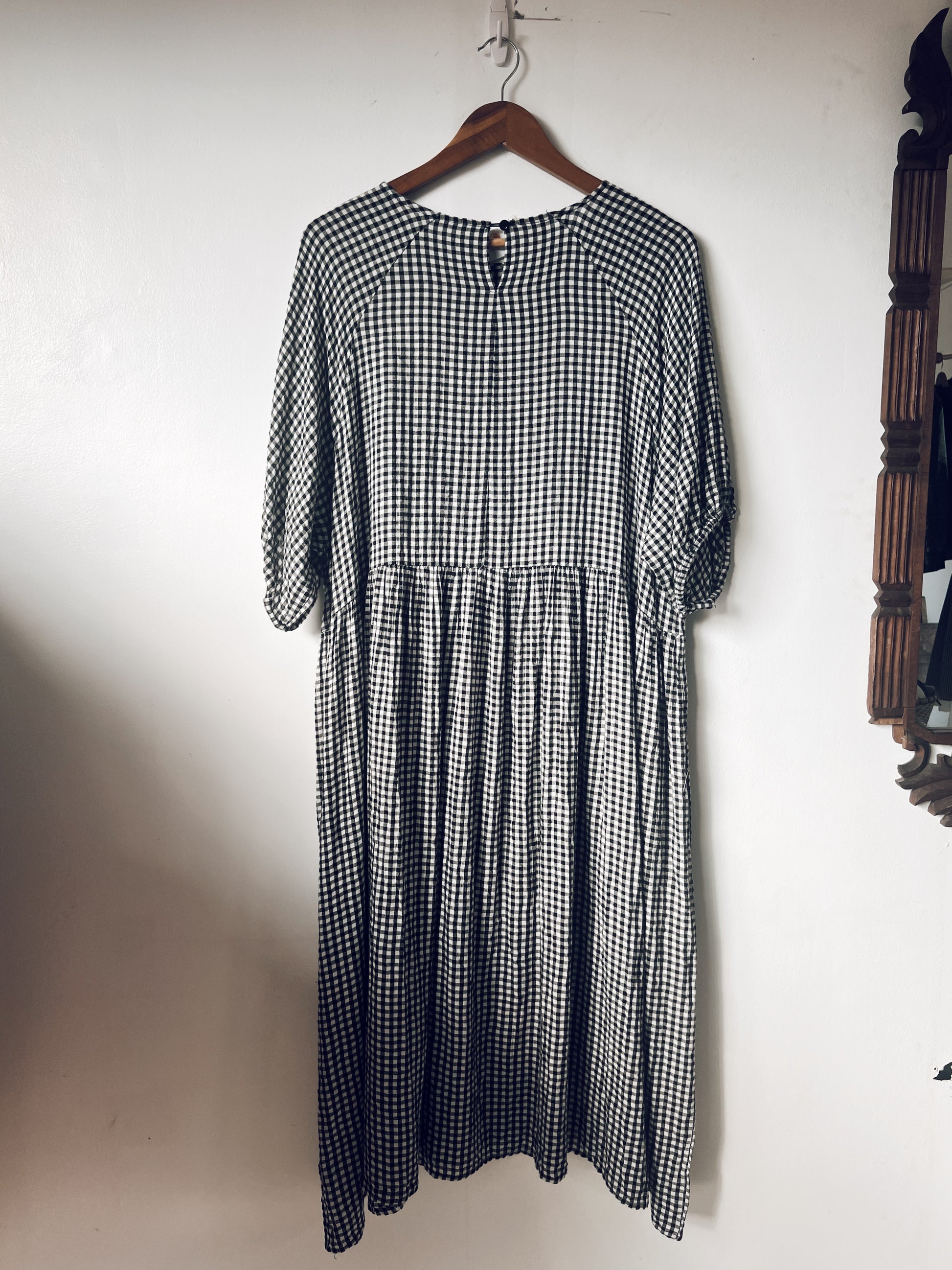 A darling dress- the minimalist uniform. Black and white checkered. Loose fit. Button closure at the back. Soft and flowy. Looks amazing with your fave black flats/slip on sandals and sling bag. Don't forget the iced coffee.