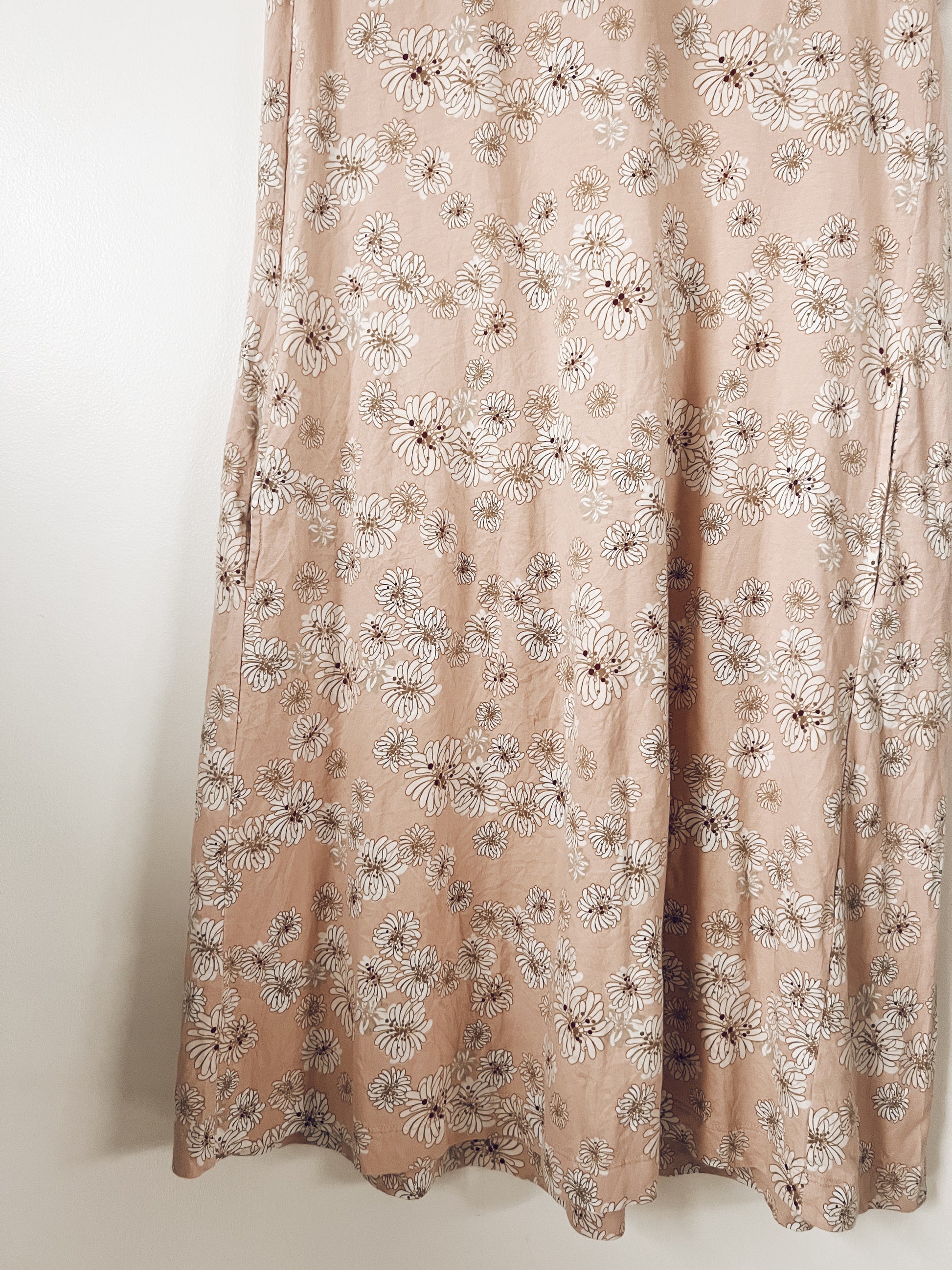 The most summer vibes dress for girls. So flowy. Peach. Florals. Sleeveless. Pockets. It's perfect.