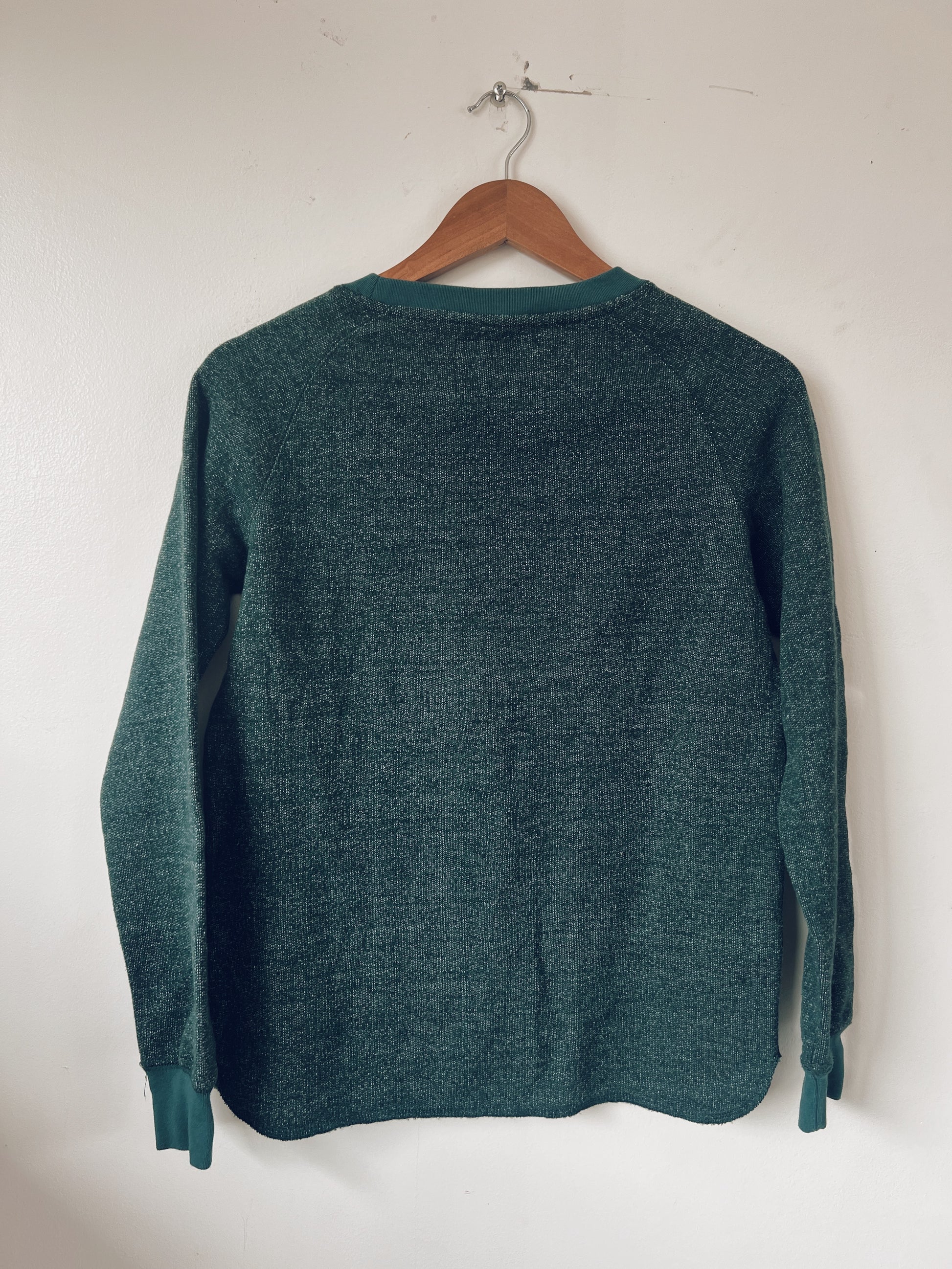 Pine green super comfy sweatshirt. Roots logo on the front. Raw edges. Oversized fit. For Baguio and Tagaytay trips.
