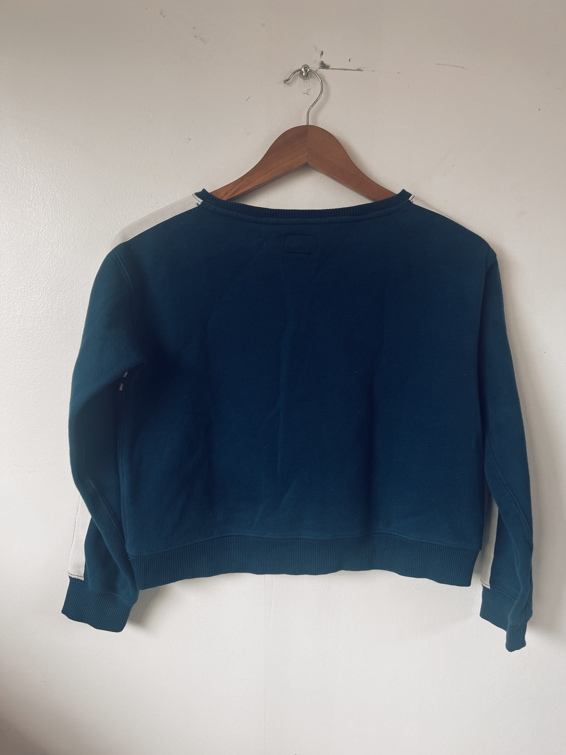 Super hip sweatshirt. Oversized fit. Cropped. Blue with white and pink. Comfy. Easy to wear. Well made.